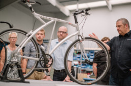 Der Besuch der GERMAN ANSWER bike technology GmbH & Co. KG war ein Termin ganz nach dem Geschmack von Peter Tauber: Dem passionierten Hobbymountainbiker ging beim Anblick der hochwertigen Mountainbikes, Rennräder und E-Bikes das Herz auf. Das in Altenstadt ansässige Unternehmen hat sich über die Entwicklung von Fahrwerksteilen als Leichtbau-Spezialist sowie im Bereich hydraulischer Dämpfersysteme etabliert.
