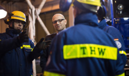 „Die Abschaffung der Wehrpflicht stellt für uns und für alle Hilfsdienste und Feuerwehren immer noch ein großes Problem dar. Da aber bei den Freiwilligen, die zu uns kommen, kein Zwang dahintersteht, sind diese meist mit umso mehr Interesse und Engagement bei der Sache. Dennoch bleibt die Helferwerbung eine wichtige Aufgabe, um die Zukunft des Ehrenamtes im Bevölkerungsschutz zu sichern.“ Der THW-Geschäftsführer lobte zudem die gute und enge Zusammenarbeit mit Bundeswehr, Polizei, DRK und Feuerwehr, die im Ernstfall meist reibungslos funktioniere. Gerade die Ehrenamtlichen im Bereich der Hilfs- und Rettungsdienste verbinde der Wunsch, im Notfall – sei es bei Unfällen oder Naturkatastrophen – wichtige Unterstützung leisten zu können. „Wenn man von diesem Bazillus befallen ist, dann bleibt man eigentlich dabei – gerne auch in mehreren Organisationen gleichzeitig“, berichtete der THW-Mann auch aus eigener Erfahrung.